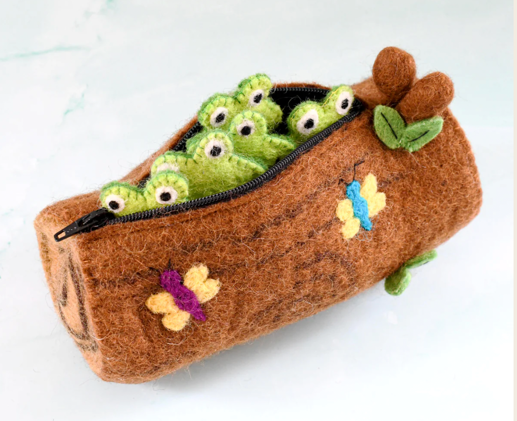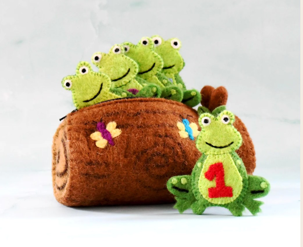 Looking for a fun and adorable set of puppets for your 2-3 year-old? Look no further than this hand crafted 5 Speckled Frogs felt Finger Puppet set. This cute puppet set is perfect for little hands and will bring endless hours of entertainment. All Frogs are stored in this beautiful zip up felt log.