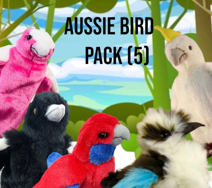 Fly into this great Puppet Value pack that contains 6 Australian Birds.