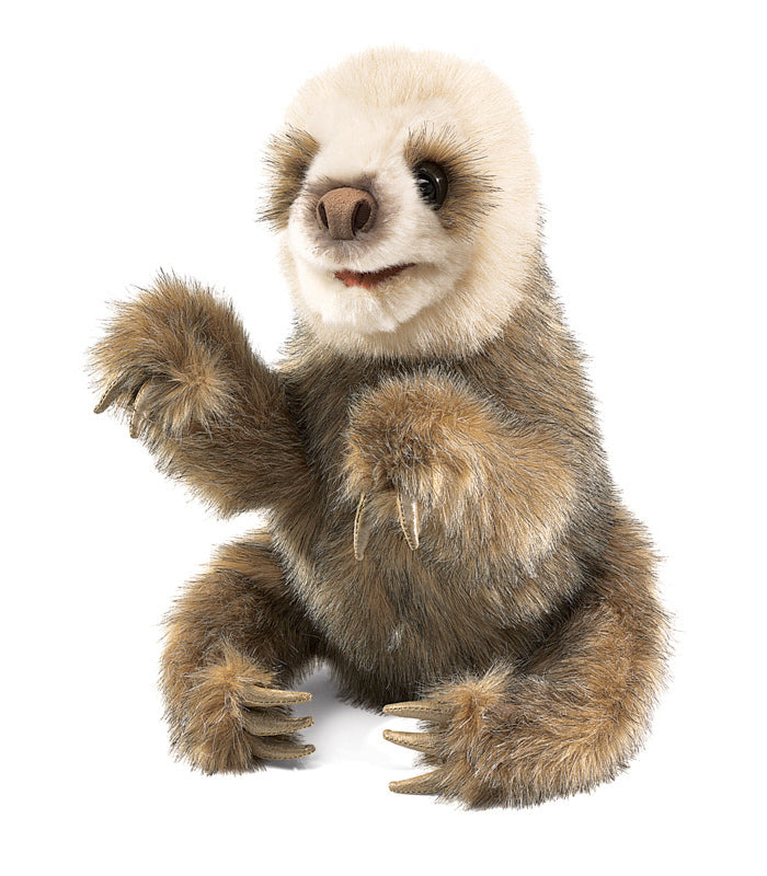 Whats your hurry? This two-toed Baby Sloth puppet is taking it easy and wants to be carried everywhere with you. This fascinating creature comes from the rainforest but can saunter right into your heart. Features a movable mouth, arms and legs, with hook and loop tabs to hang the puppet anywhere.