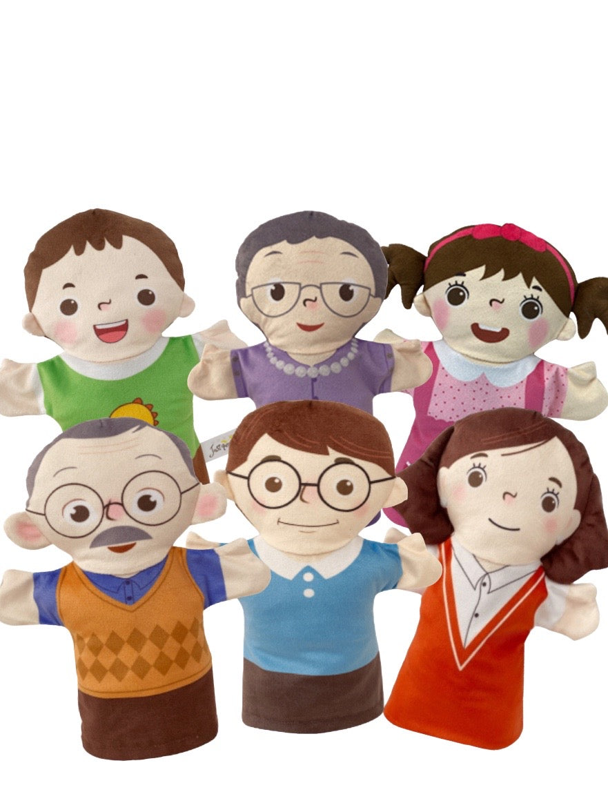 This set of puppets includes 6 family members, 2 Grandparents, 2 Parents & 2 Children. They are a very basic (printed faces) set of puppets that can be used by families, educators, schools, churches or kindergartens and more. Each puppet is approx 25cm tall. Each puppet is individually printed - both faces and clothing.