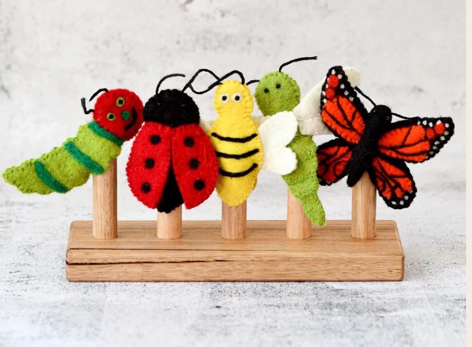 Looking for a fun and adorable set of puppets for your 2-3 year-old? Look no further than this hand crafted Bugs Finger Puppet set. This cute puppet set is perfect for little hands and will bring endless hours of entertainment.