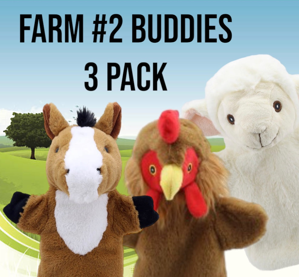 A pack of 3 Farm Animals with the softest fabric. Very cuddly and a great introduction to farm animals through puppet fun.