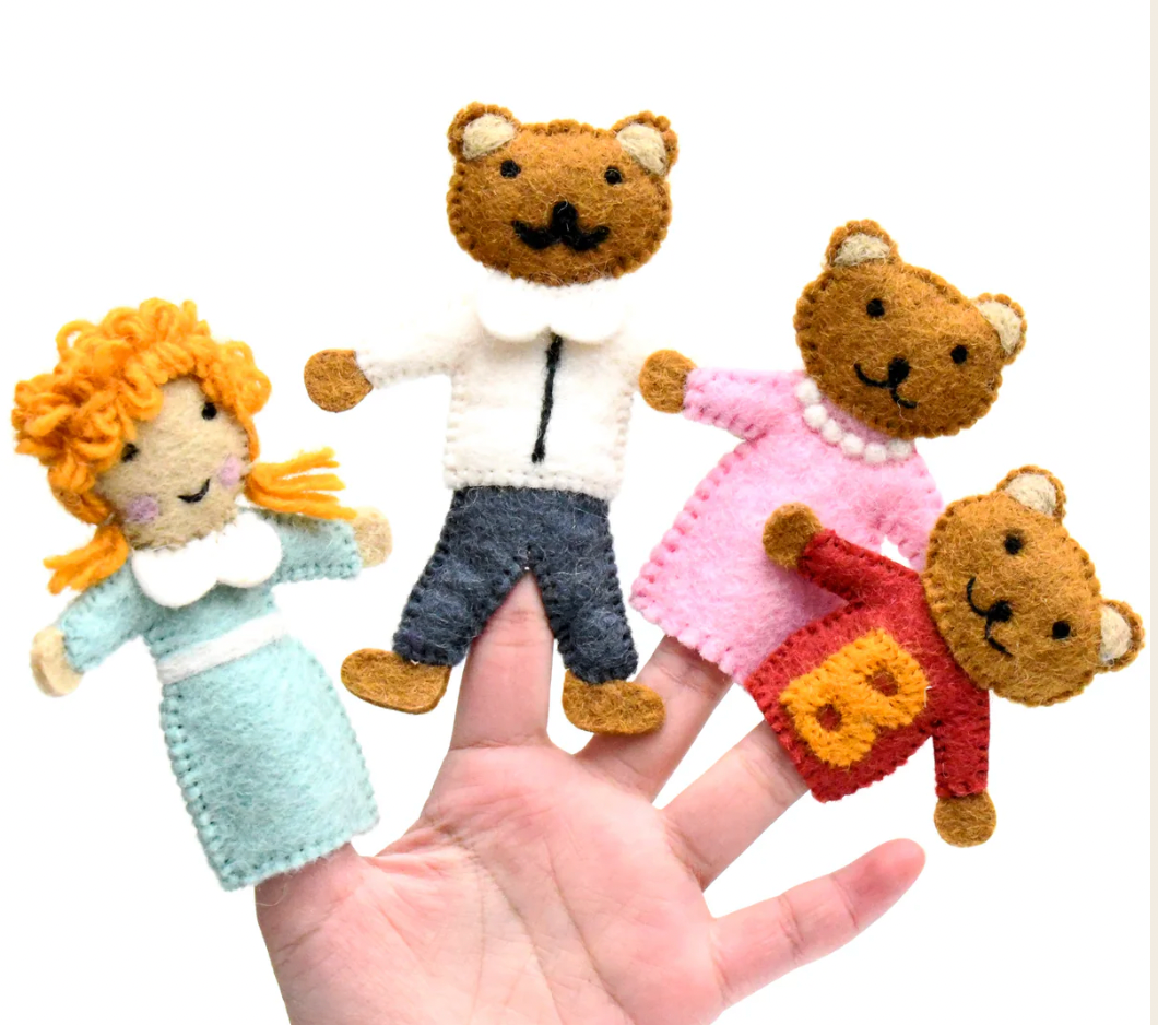 Looking for a fun and adorable set of puppets for your 2-3 year-old? Look no further than this hand crafted Goldilocks & The Three Bears felt Finger Puppet set. This cute puppet set is perfect for little hands and will bring endless hours of entertainment.