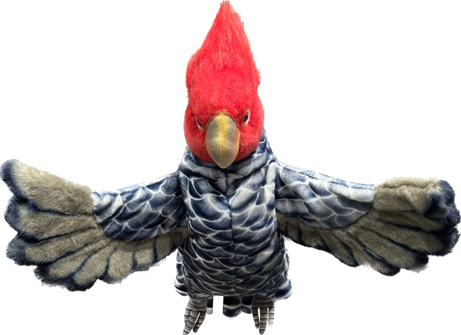 These beautiful Hansa puppets are amazingly realistic and life like. This Gang Gang Cockatoo is approx 50cm wide wing to wing and 40cm head to toe. The colours on this puppet are amazing.You will be lucky to find a more realistic puppet anywhere..