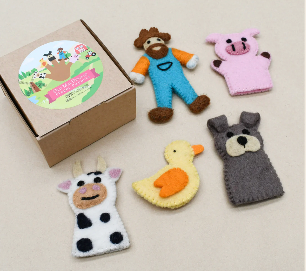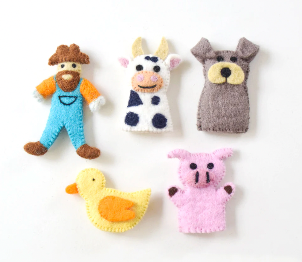 Looking for a fun and adorable set of puppets for your 2-3 year-old? Look no further than this hand crafted Old MacDonald felt Finger Puppet set. This cute puppet set is perfect for little hands and will bring endless hours of entertainment.