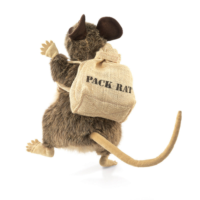 Even if you find the real thing creepy, this roly-poly Rat puppet will win you over. With soft fur, expressive eyes and a little twitchy nose and tail, he can be shy or bold, cautious or curious. He is off to collect more trinkets for his knapsack that will look fabulous in his nest. With his detachable “Pack” he can collect to his heart’s content.