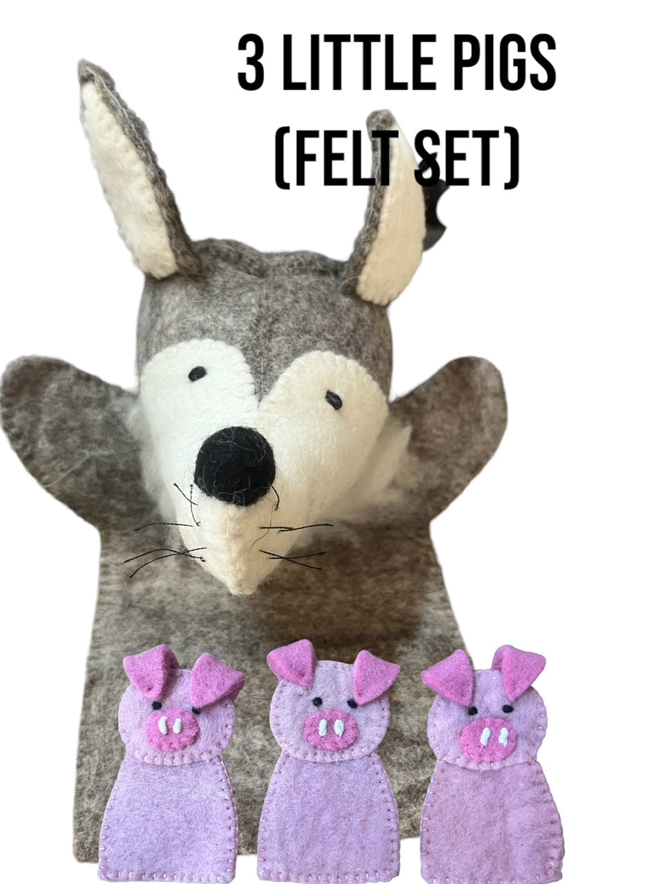 Three Little Pigs with Big Bad Wolf Felt Puppet Set