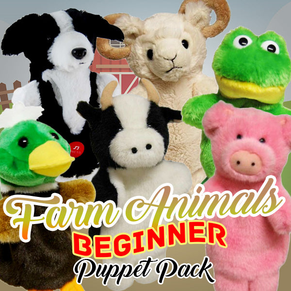 Pack includes, Duck, Frog, Sheep, Dog, Cow and Pig Puppets.